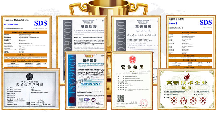 Xi'an Deli Biochemical Industry Co., Ltd. е високо-технолошка компанија специјализирана за истражување и развој, производство и продажба на циклодекстрини и нивни деривати. Ние доставуваме фармацевтски ексципиенси на клиентите ширум светот со стабилен квалитет и сигурна услуга.