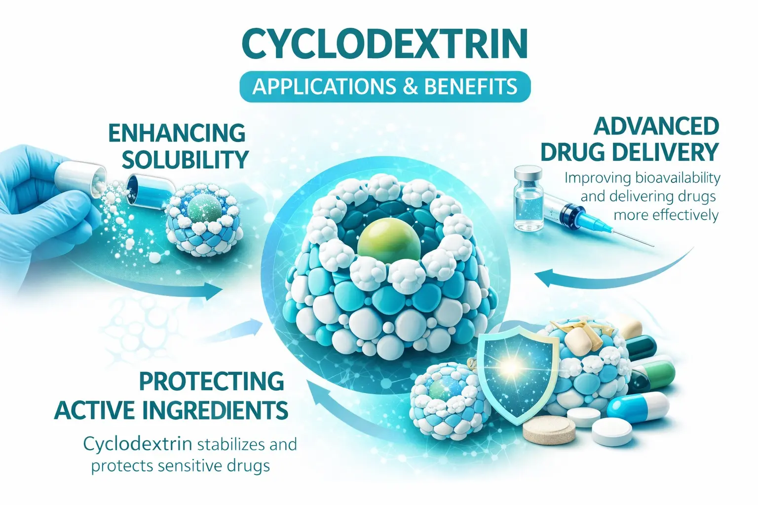 Циклодекстрин е нов тип на природен цикличен олигосахарид кој целосно го промени полето на фармацевтскиот развој и науката за формулација. Овие единствени молекули се составени од единици на гликоза распоредени во структура во облик на конус кои формираат комплекси за вклучување со различни соединенија за подобрување на растворливоста, стабилноста и биорасположивоста. Како што се движиме во 2026 година, таа технологија продолжува да ги подобрува системите за испорака на лекови, давајќи им на фармацевтските научници неспоредливи шанси.